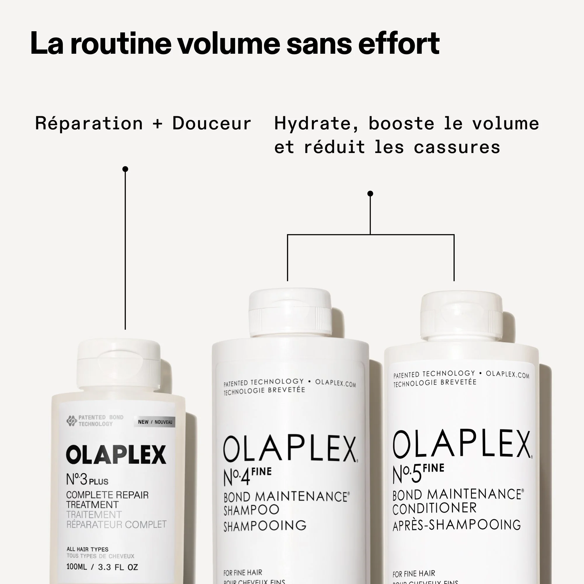 3. Suivez avec le shampooing et le revitalisant OLAPLEX.